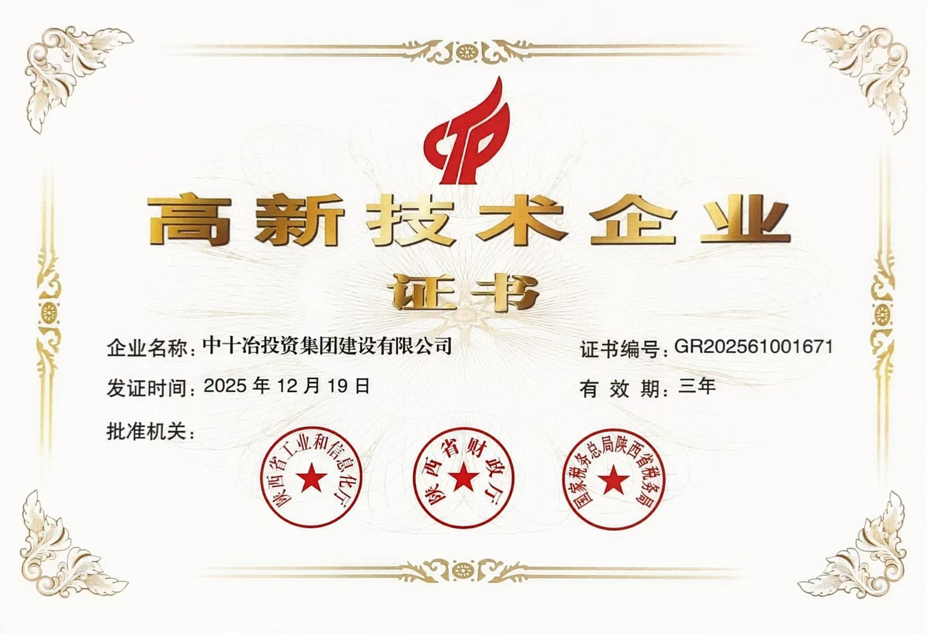 建设公司成功通过国家高新技术企业认定