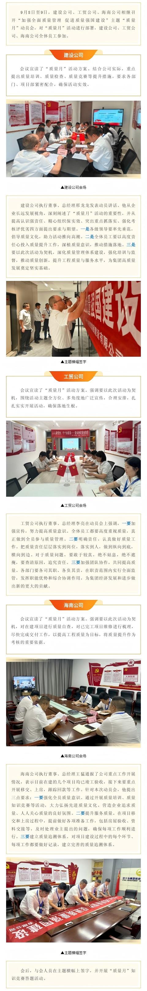建设公司、工贸公司、海南公司召开“质量月”动员会