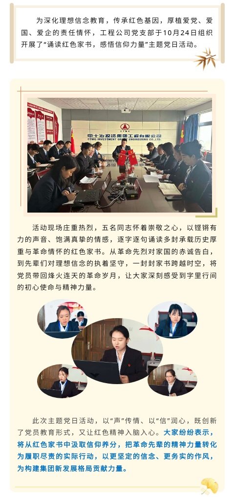 工程公司党支部开展“诵读红色家书 感悟信仰力量”主题党日活动